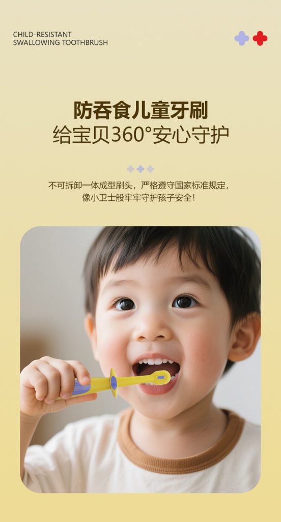 1、安全防护:一体成型防吞刷头,严守标准,搭配加宽挡片,阻挡过深伸入,规避误吞风险。