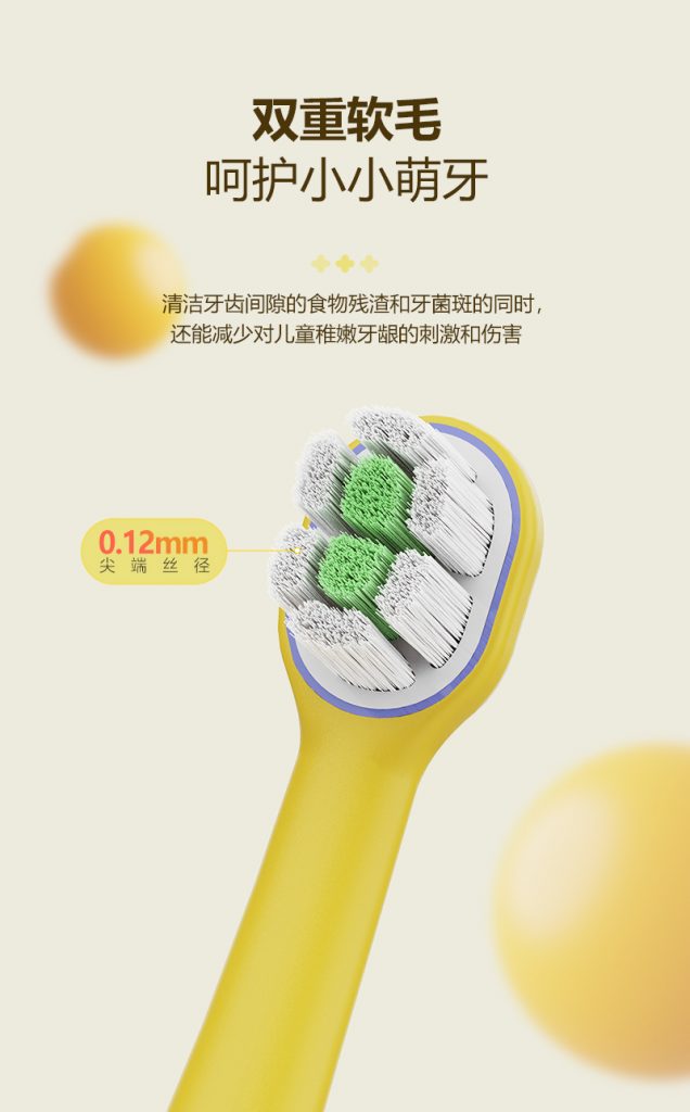 2、护牙软毛:0.12mm尖端软毛,双重组合,清洁同时,减轻对稚嫩牙龈刺激。